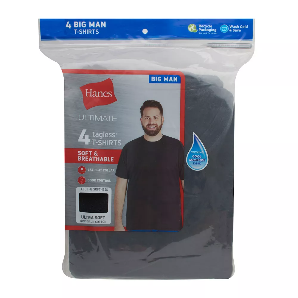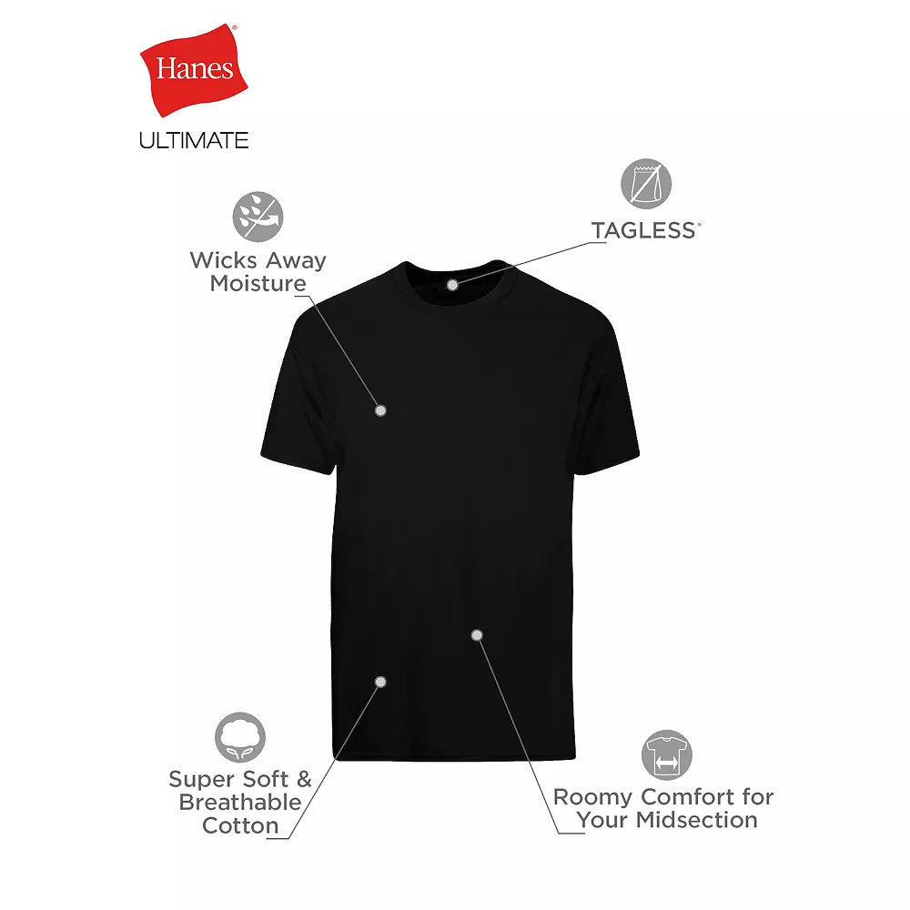 Hanes Ultimate® Big Man Collection is constructed with wider shoulders and generous arm openings to provide a perfect fit. Worn on their own or as an undershirt, the soft cotton fabric provides a comfortable fit all day. The Tagless® collar stays flat and keeps its shape after washing. Hanes FreshIQ™ technology is designed to wick moisture away, so you can stay cool, dry and odor free. These short-sleeve men’s shirts are tailored with a roomier fit around your midsection and stay neatly tucked for comfort and easier movement. Stay comfortable throughout the day wearing Hanes Ultimate® soft and breathable cotton men’s crewnecks.