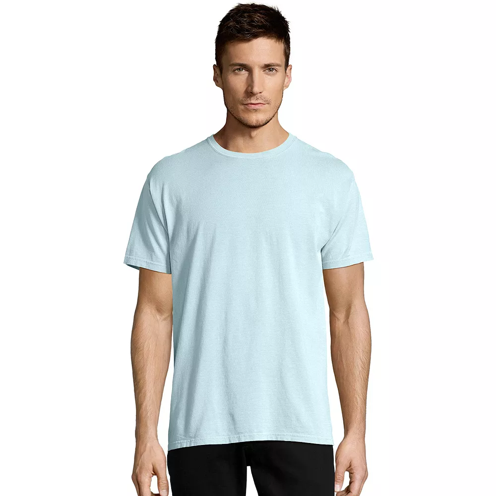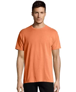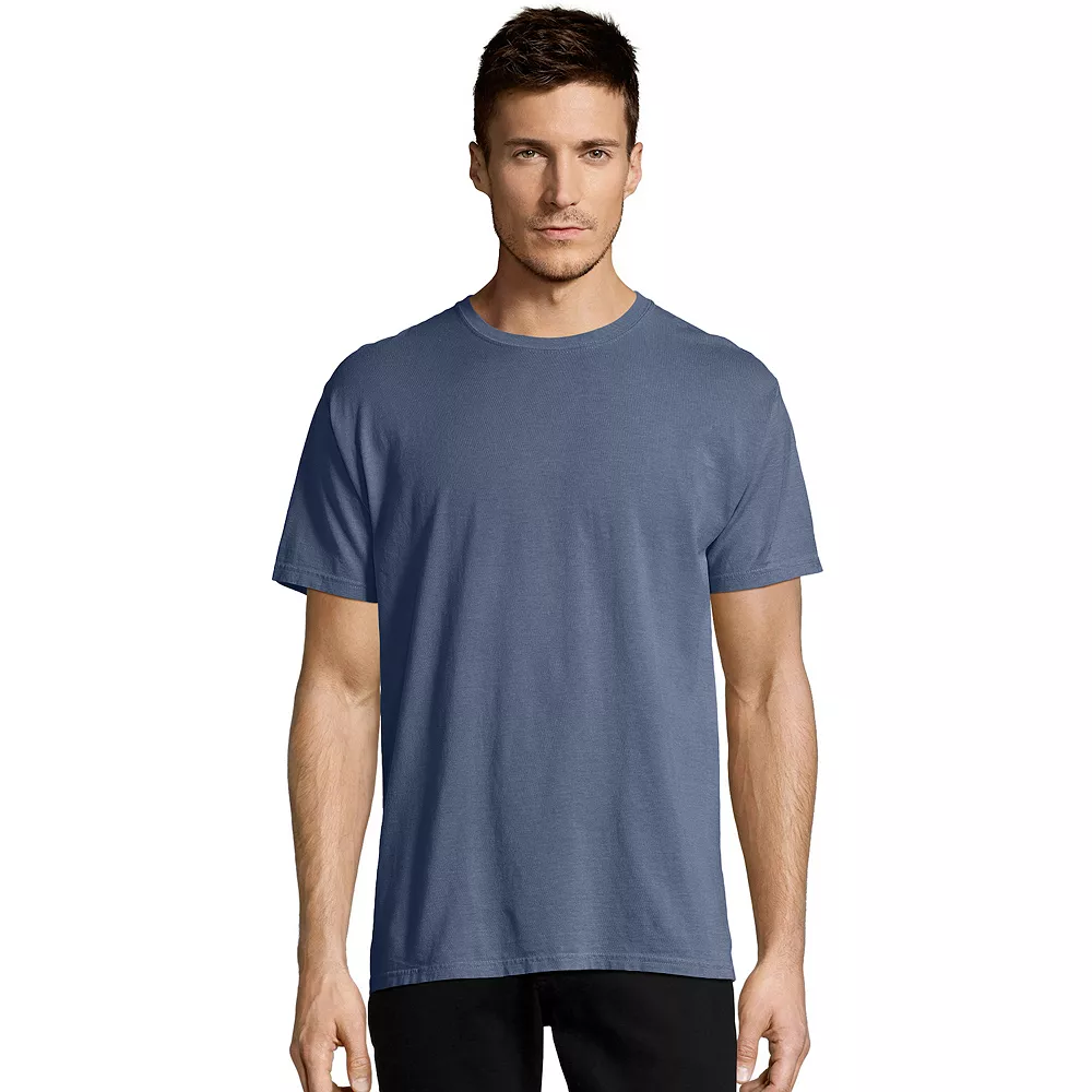 Classic comfort. Thanks to its garment-dyed finish and soft cotton construction, this men’s Hanes crewneck t-shirt keeps you feeling great during day time or sleep time.