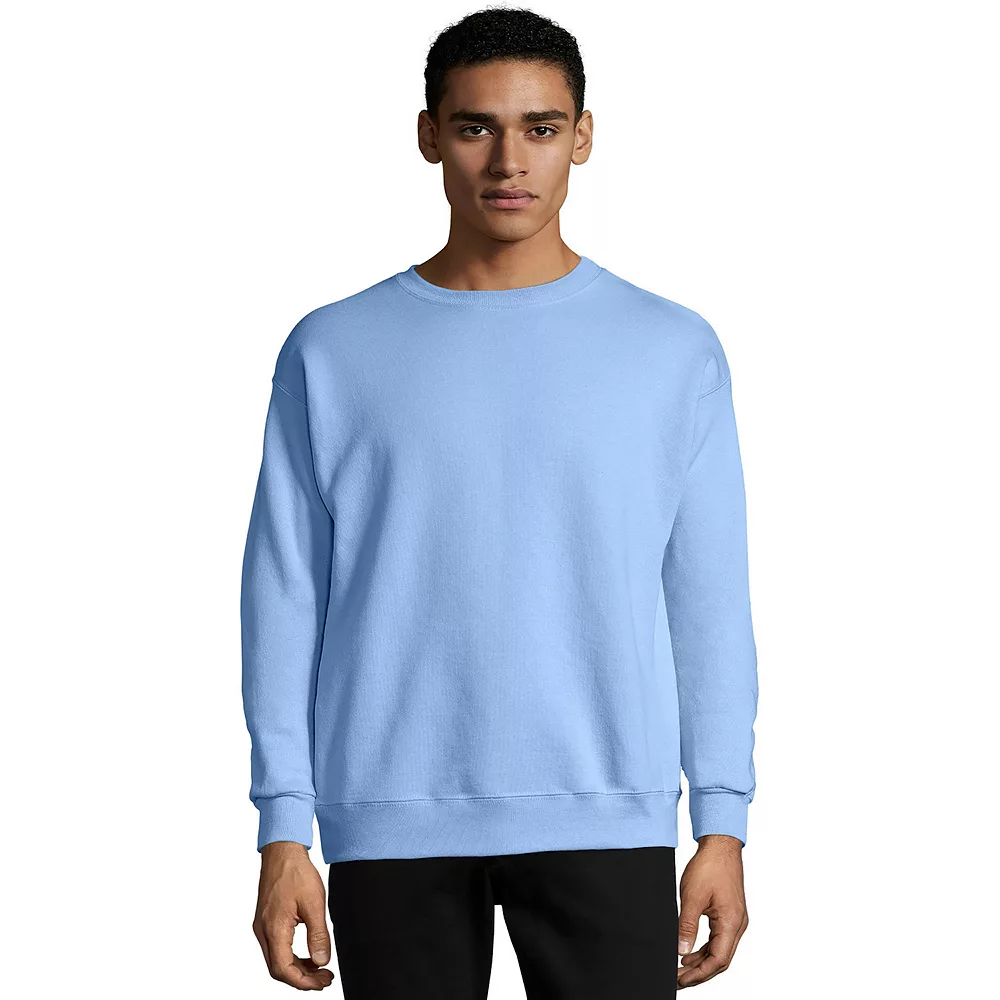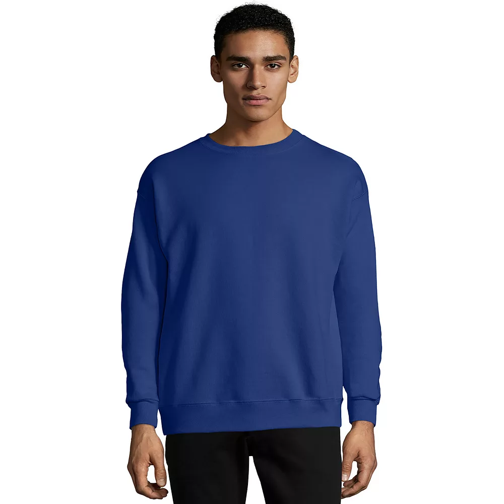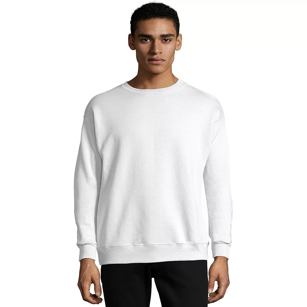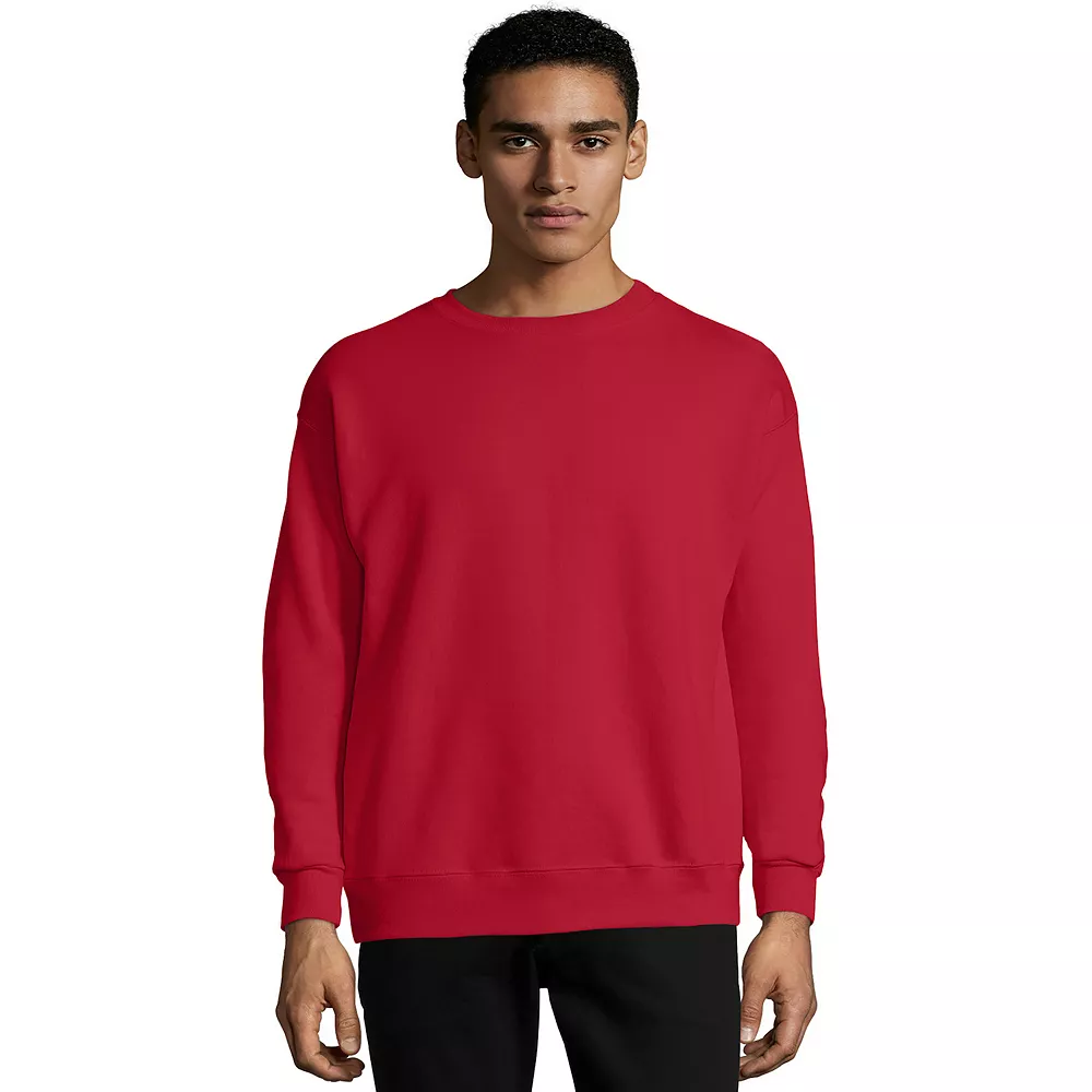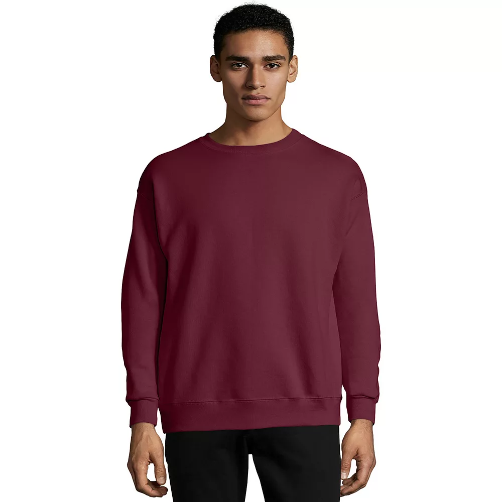 Feel great all day in this men’s Hanes sweatshirt featuring an environmentally-friendly design and soft fleece construction.