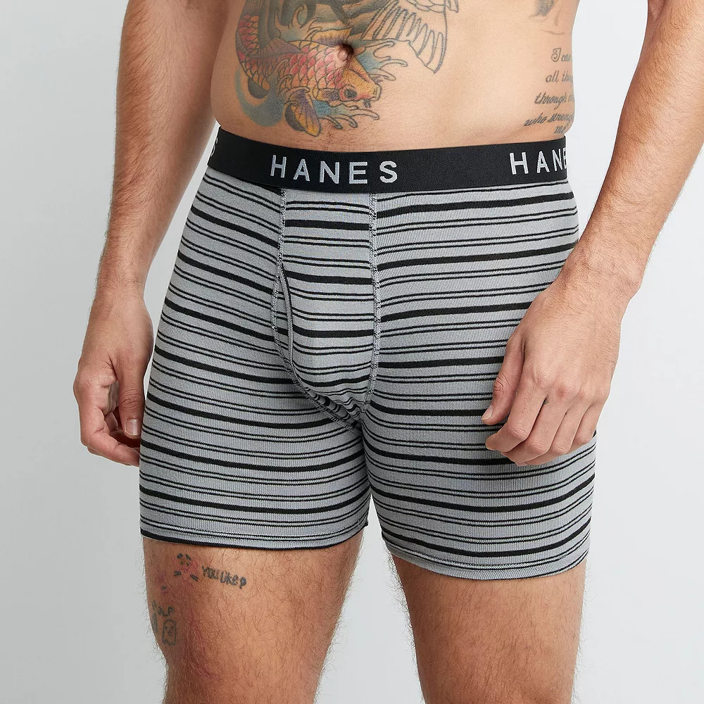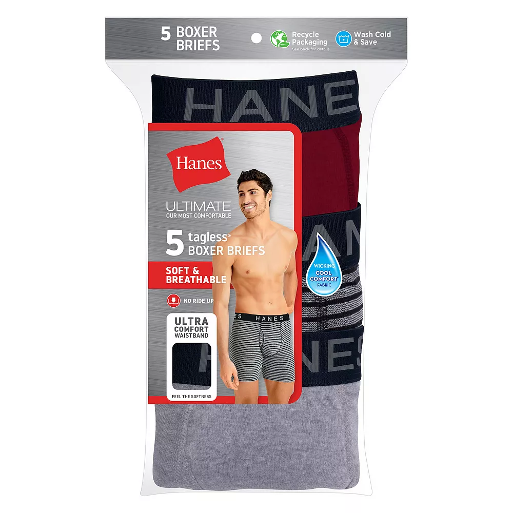 Find all day comfort with these men’s Hanes exposed waistband boxer briefs.