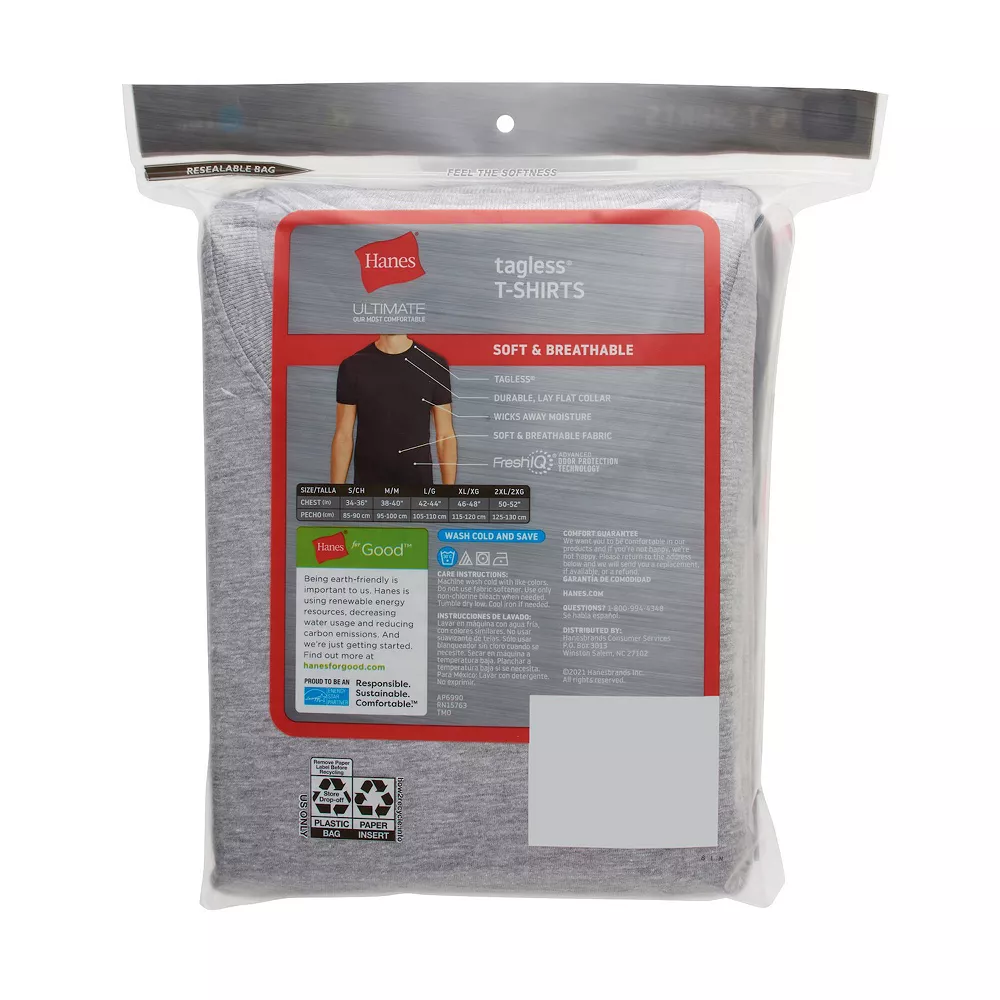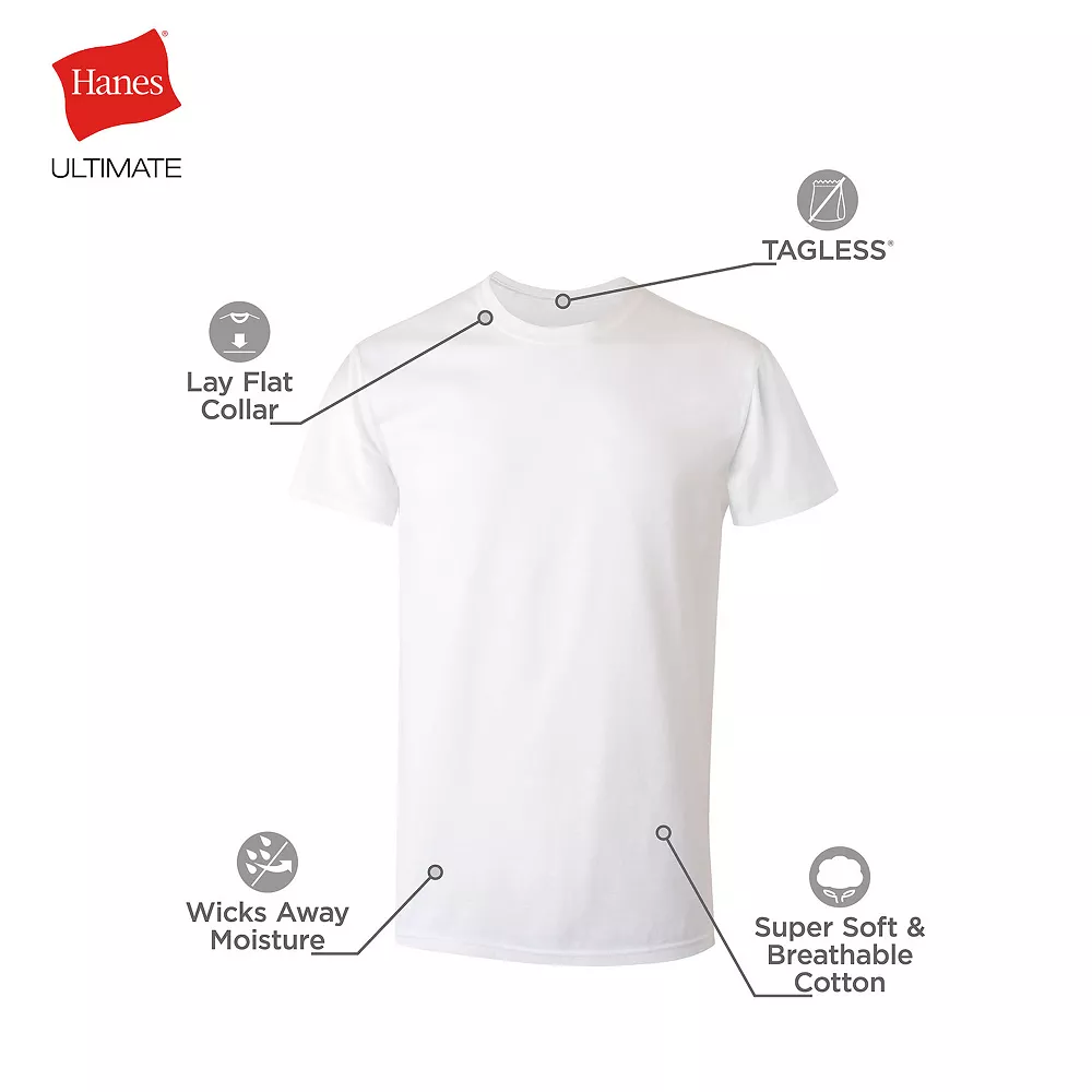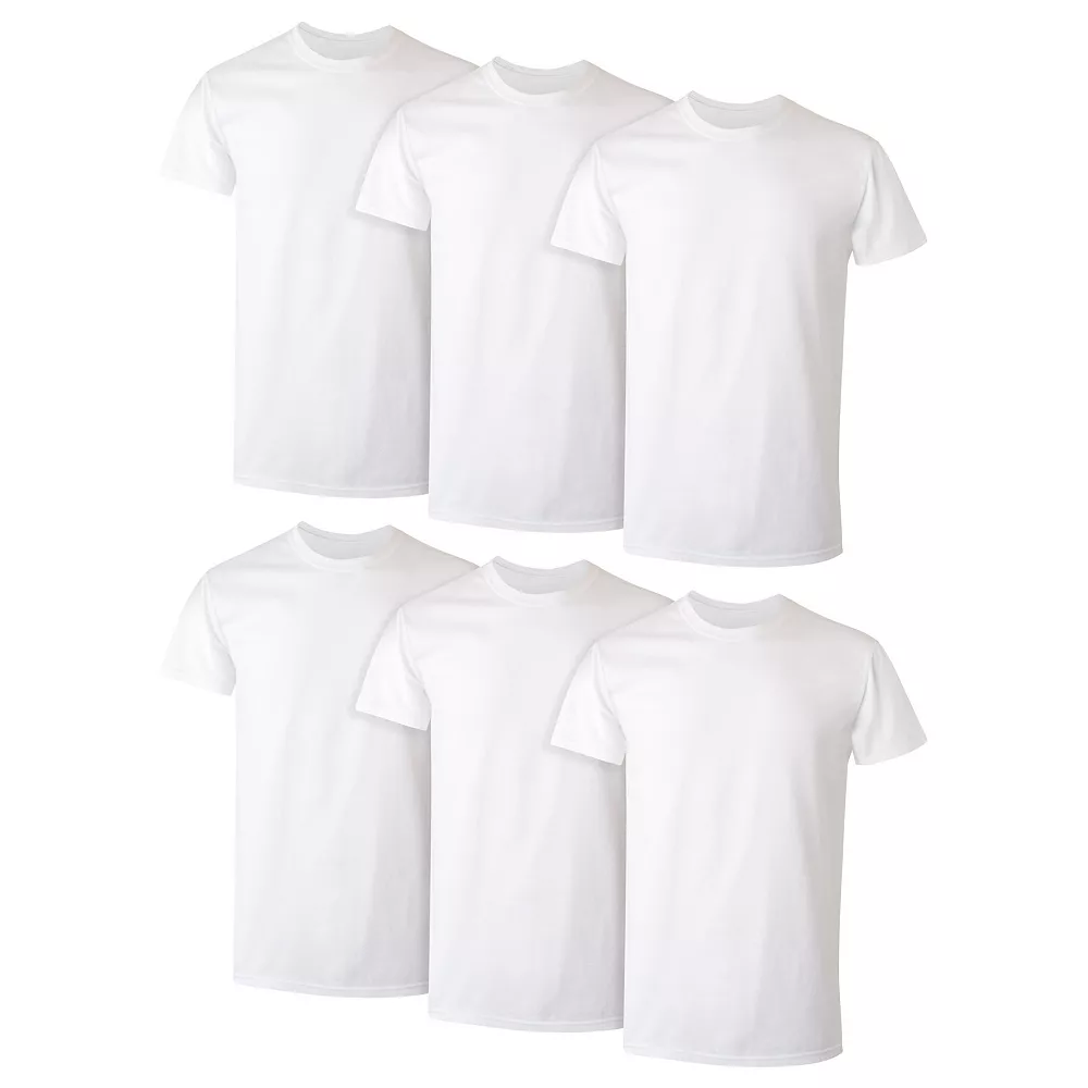 Comfort zone. Featuring a ComfortSoft construction and lay flat collar, these men’s crewneck tees from Hanes keep you feeling great while retaining their shape. In white.