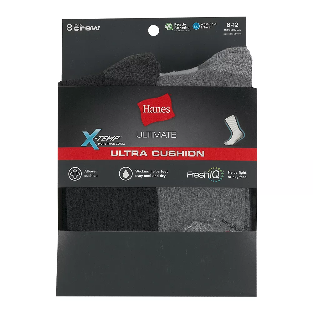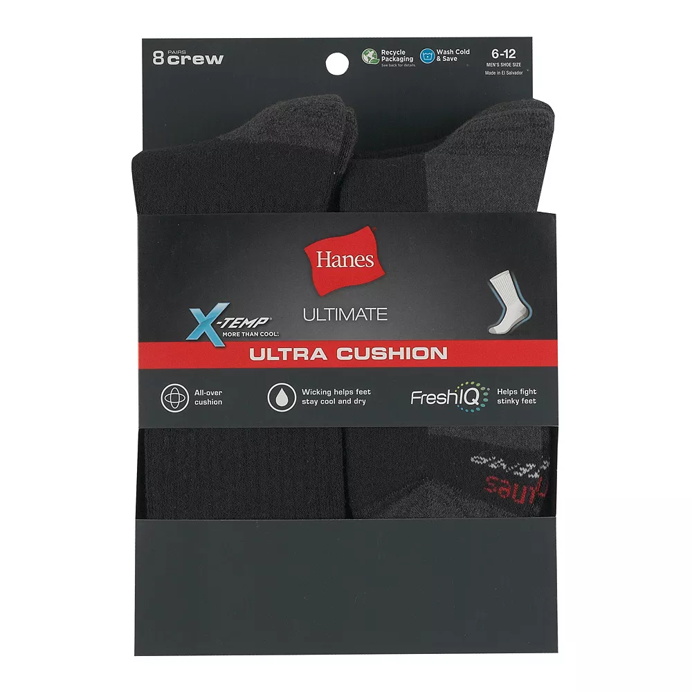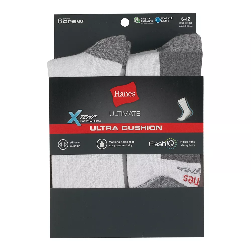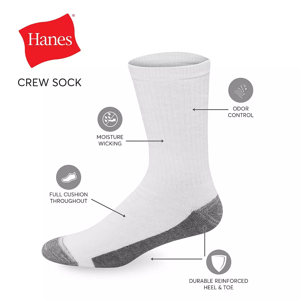 Hanes adapts for you. The X-Temp design of these men’s Hanes crew socks adjusts to your surroundings, providing a cool and comfortable experience all-day long.